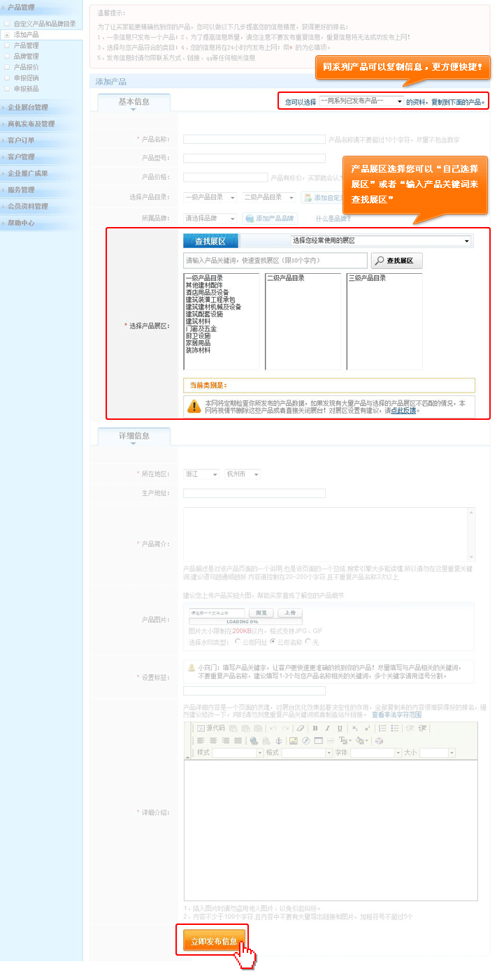 W二步:(x)发布产品信息